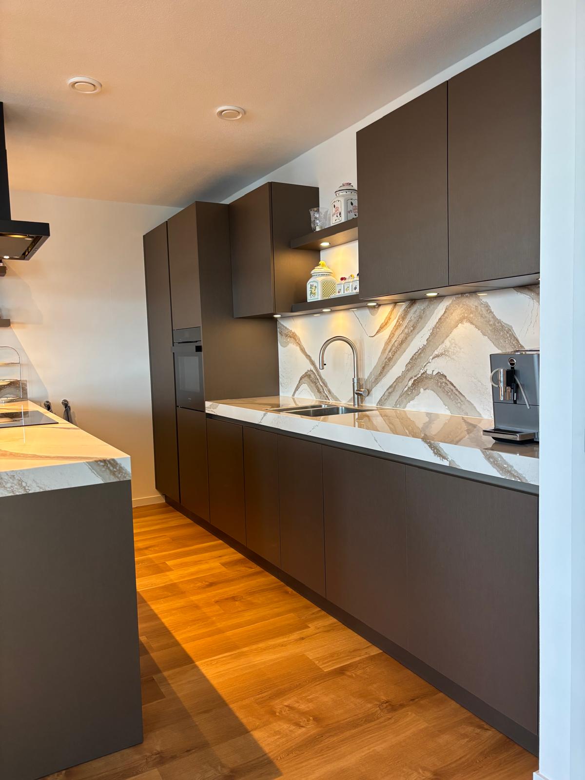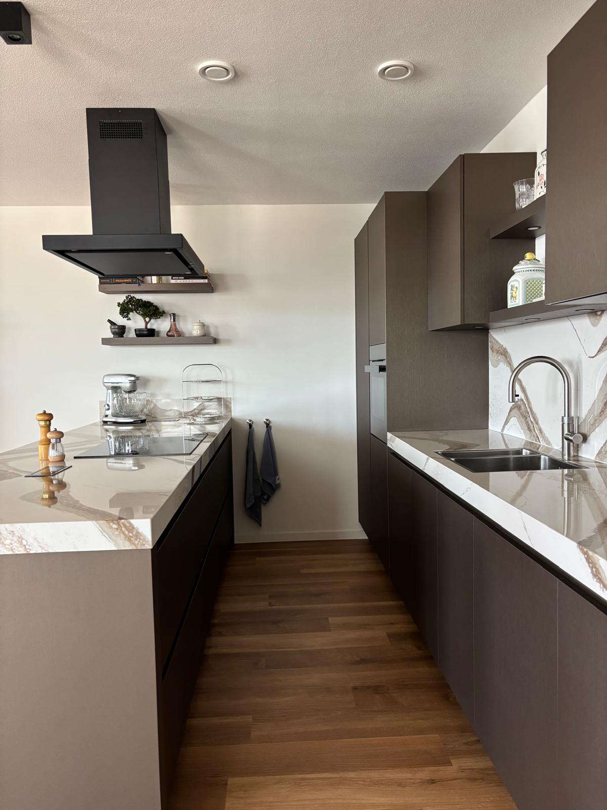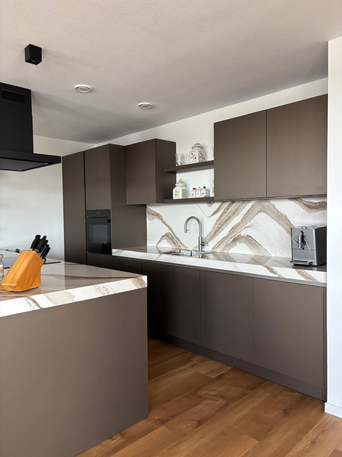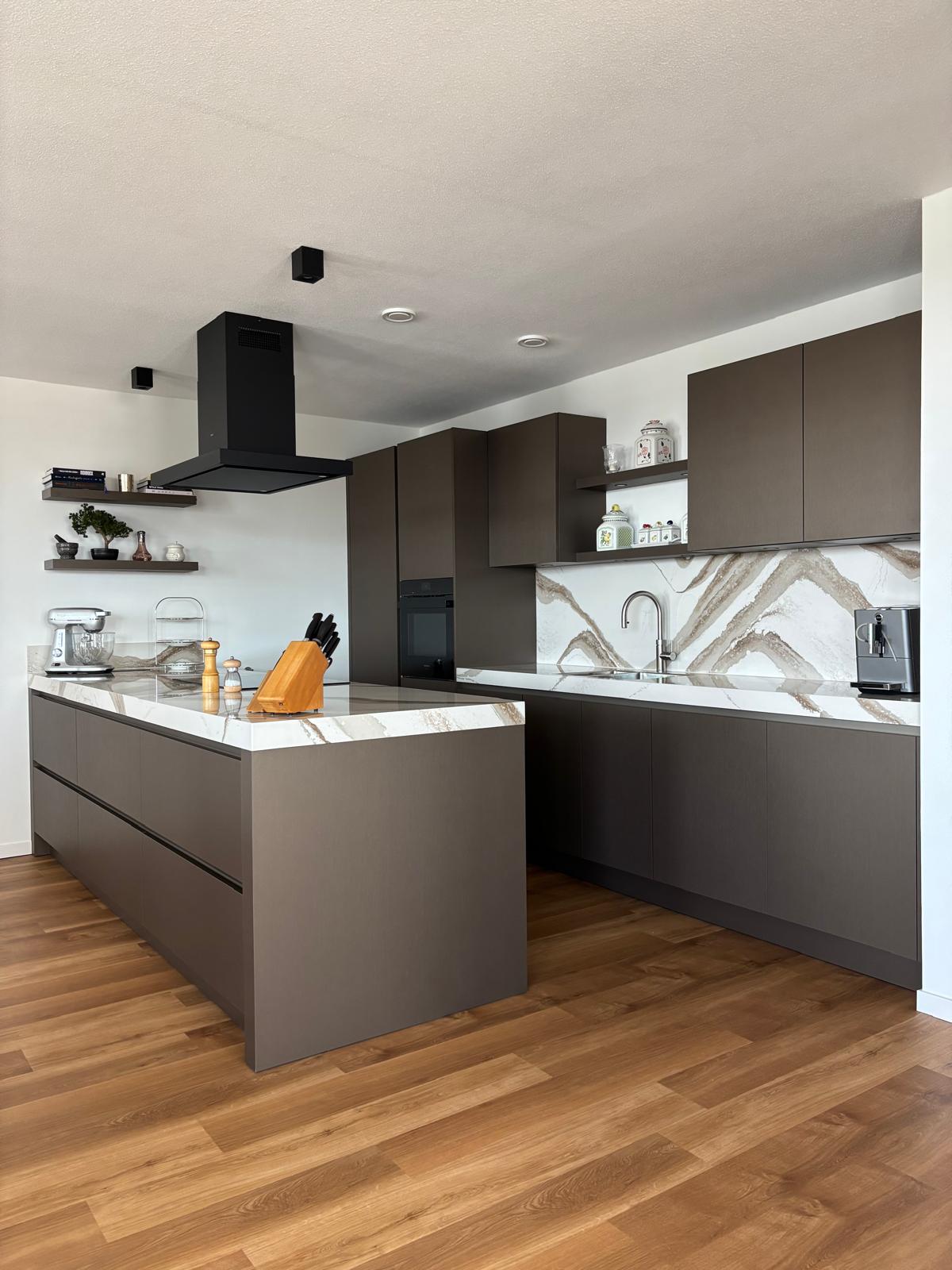 Prachtige walnoot keuken, met duurzaam werkblad