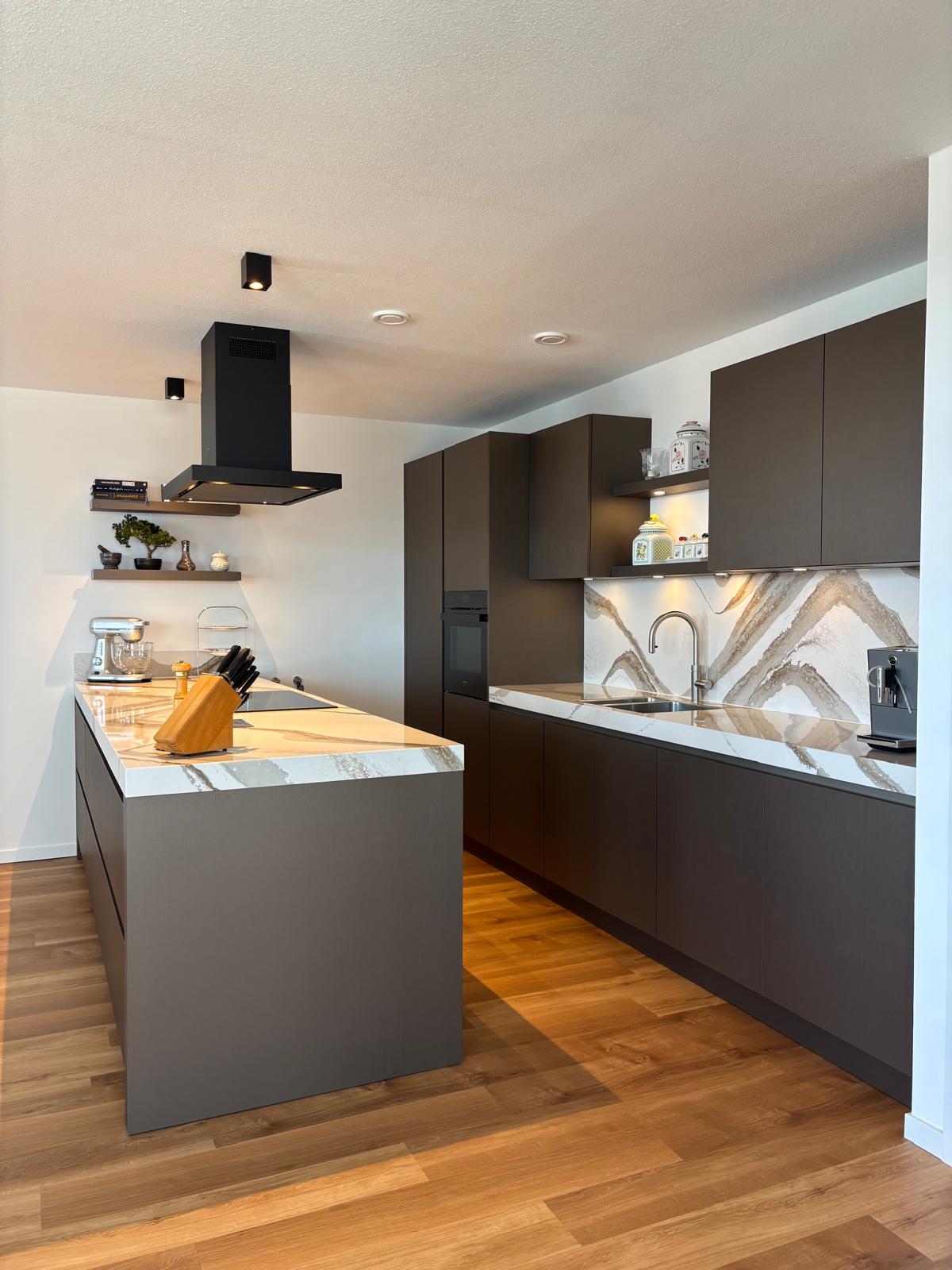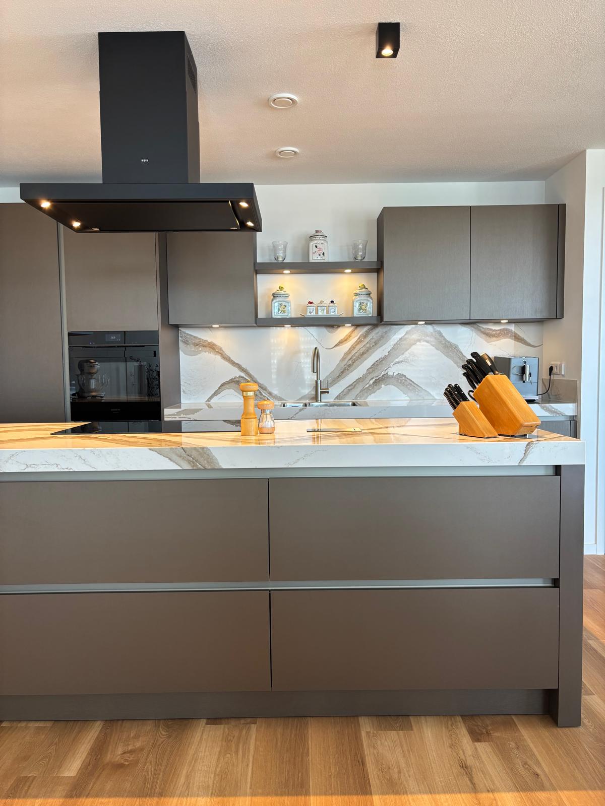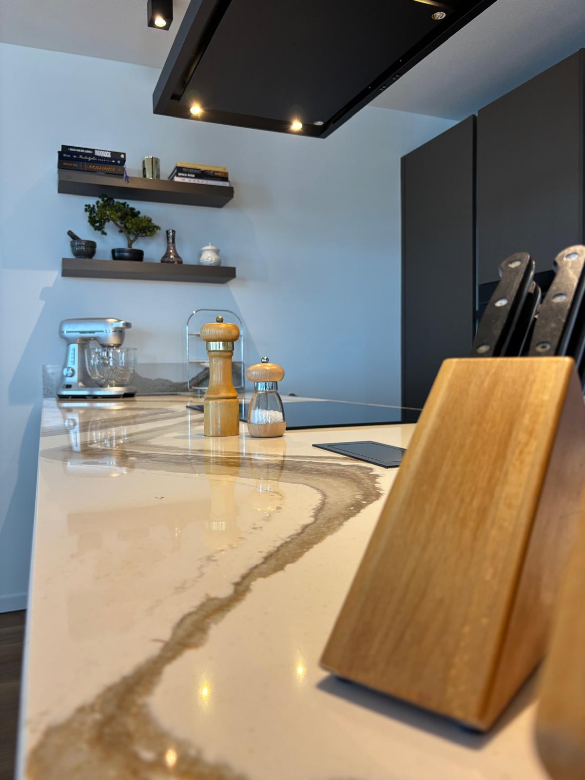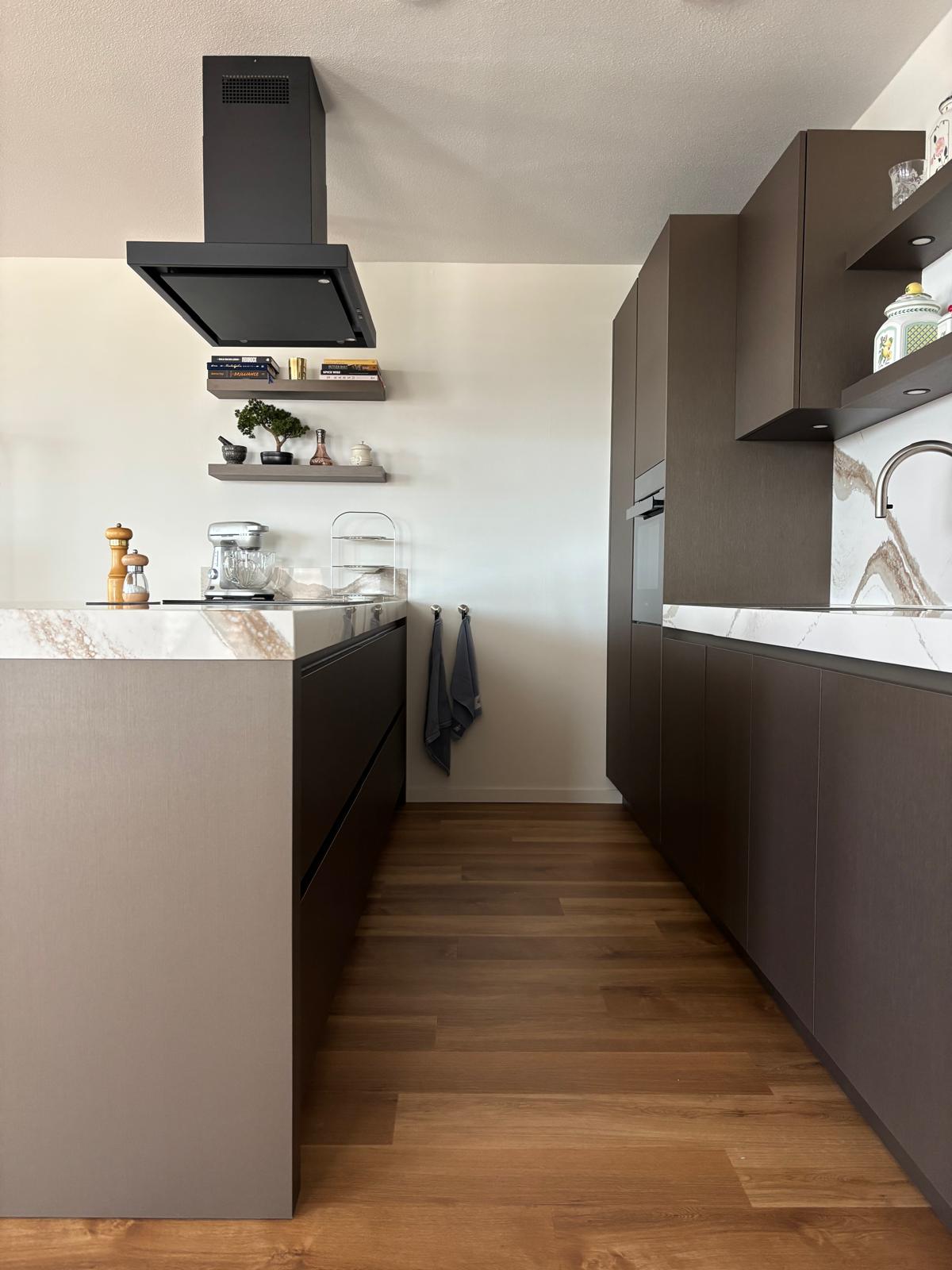 Prachtige walnoot keuken, met duurzaam werkblad