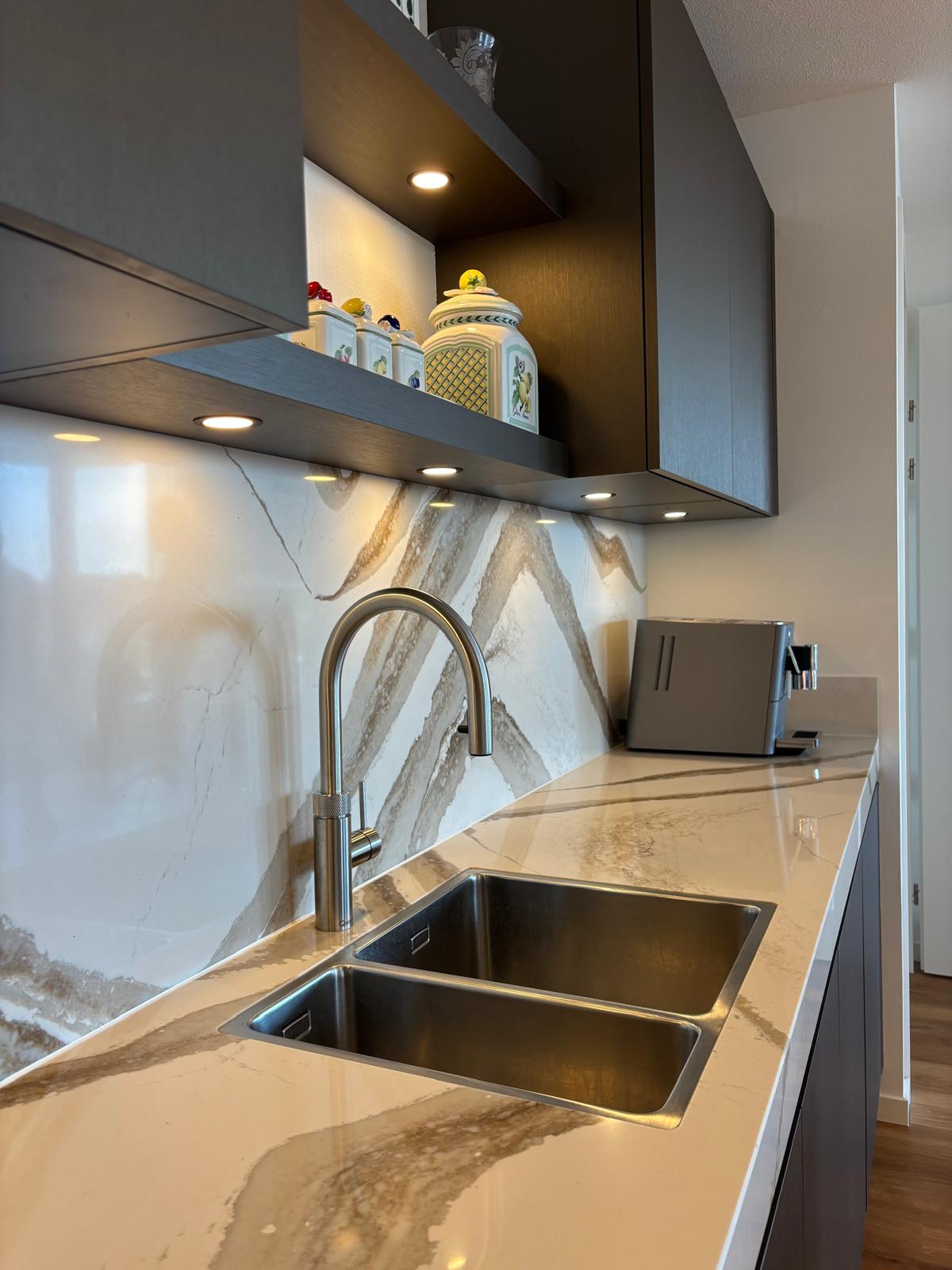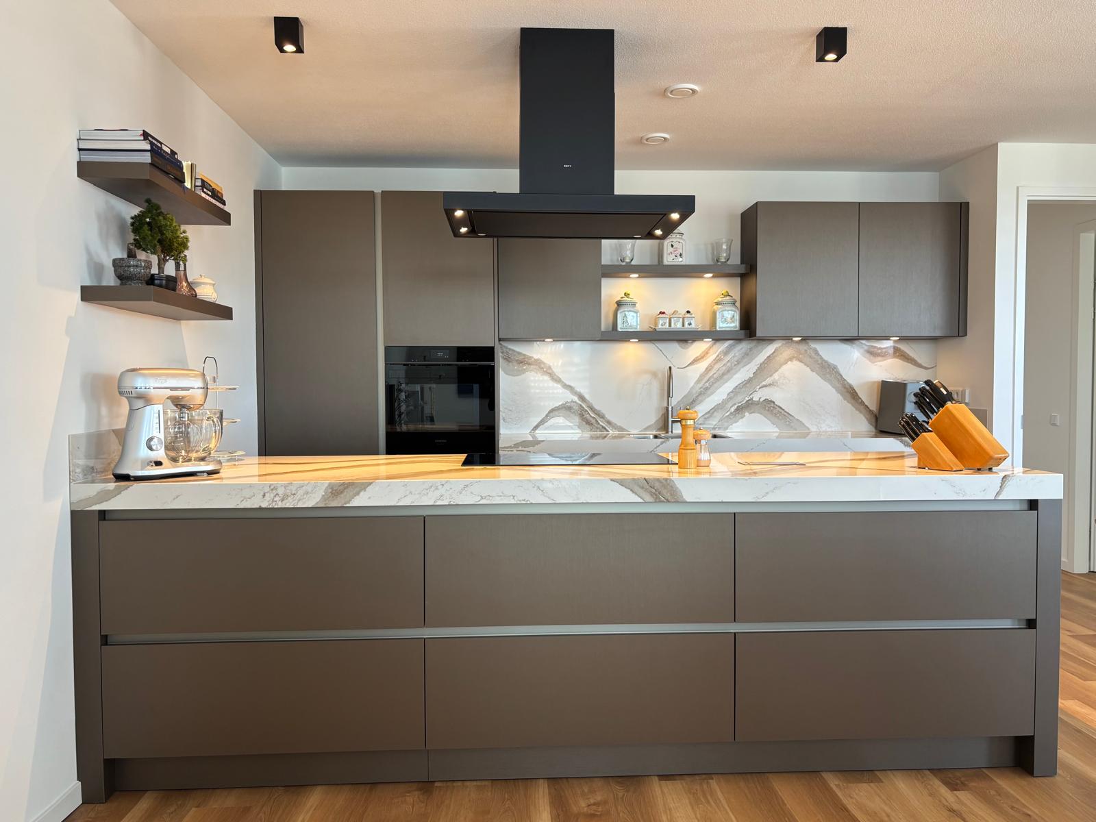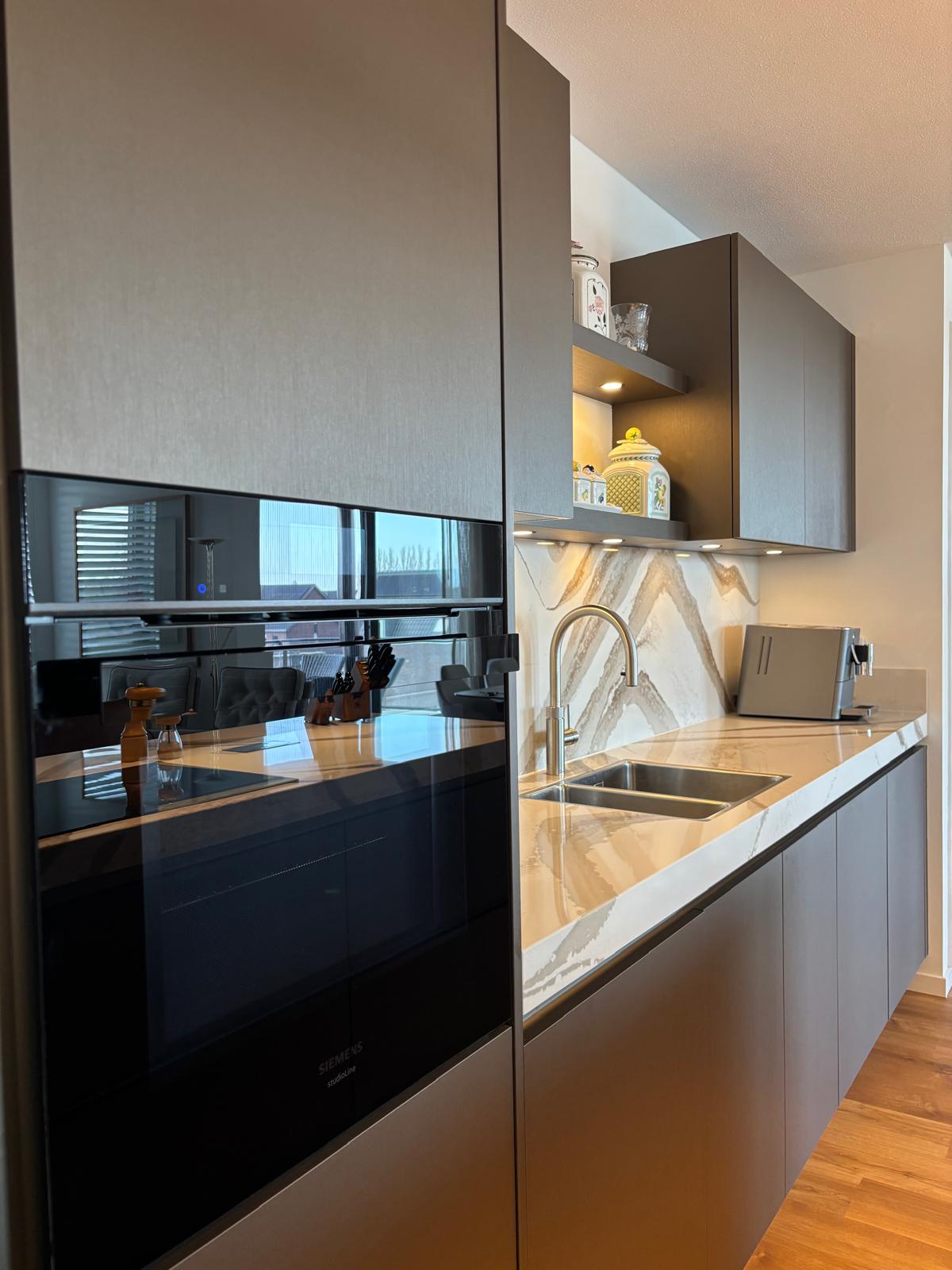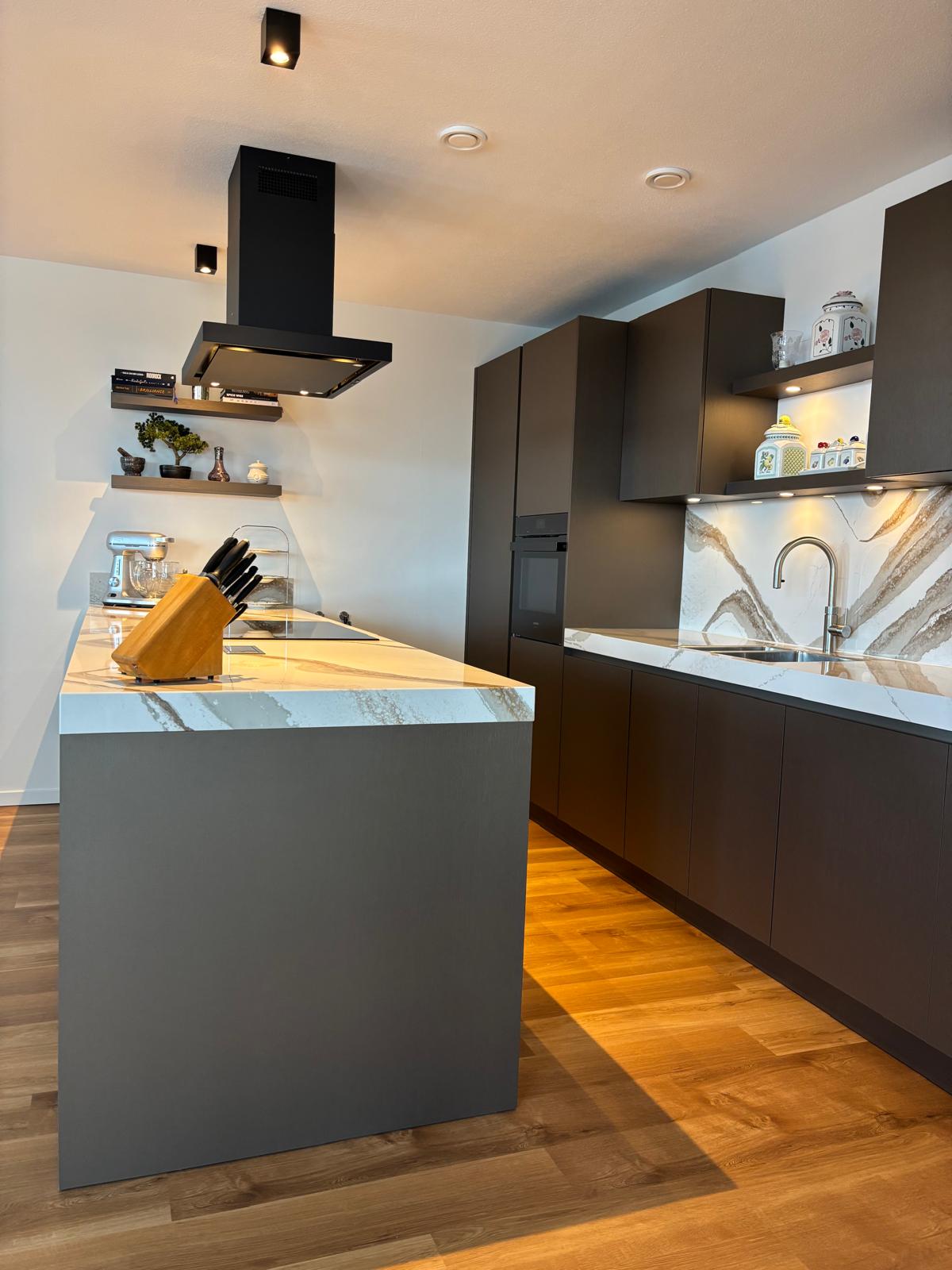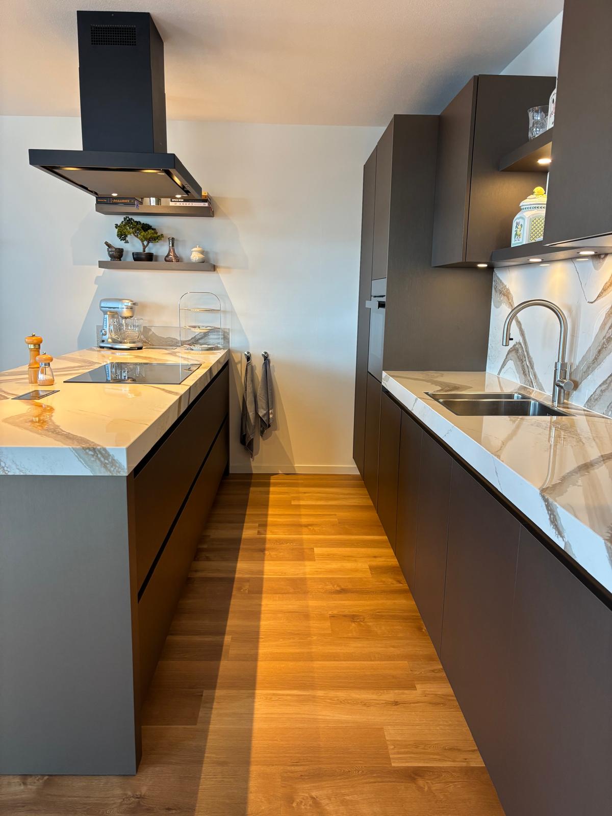 Prachtige walnoot keuken, met duurzaam werkblad