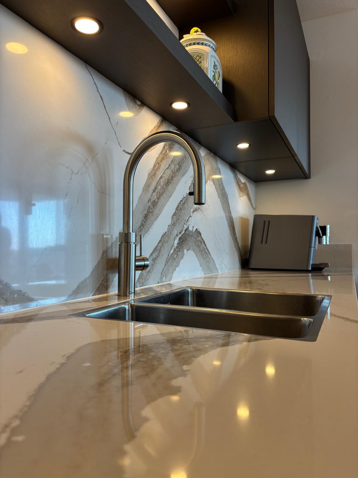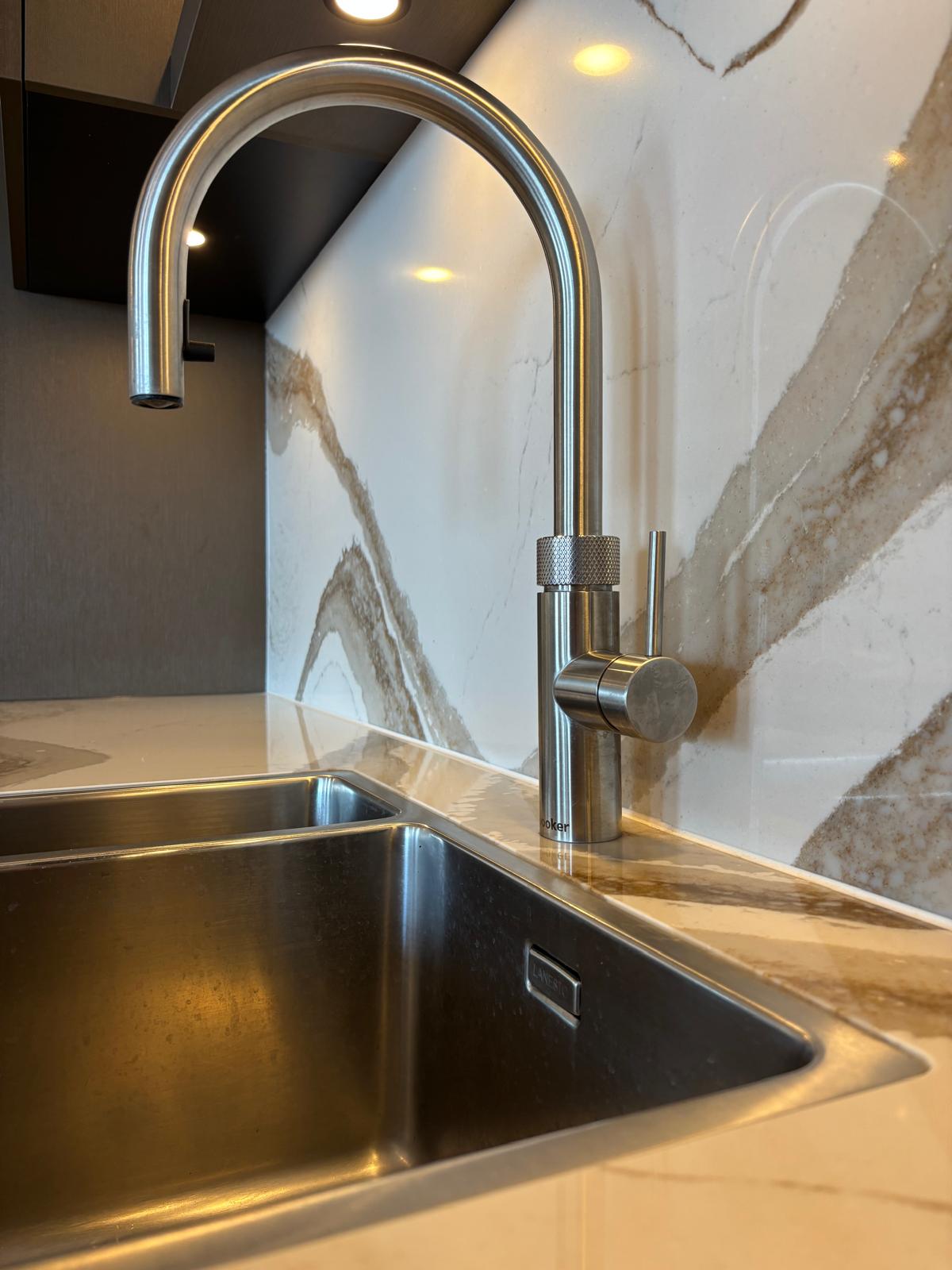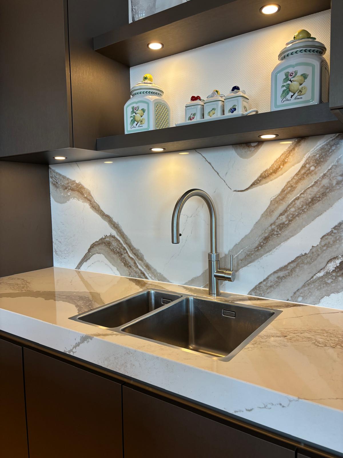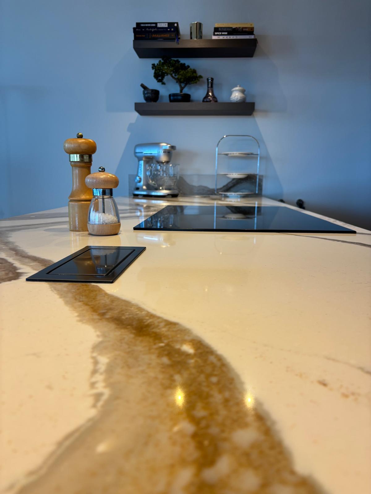 Prachtige walnoot keuken, met duurzaam werkblad